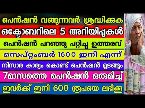 ഒക്ടോബറിലെ അഞ്ച് പ്രധാനപ്പെട്ട പെൻഷൻ അറിയിപ്പുകൾ,five important notices for September purchasers of security and welfare pensions, Social Security started distributing welfare pensions, a new way of distribution these days,
